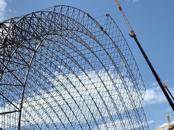 (2)网架加工前应对现场尺寸进行复测,确认无误后方可进行加工、安装;网架制作、运输、安装应遵守《空间网格结构技术规程》JGJ7-2010、《钢网架晋州螺栓球节点》JG/T 10-2009、《钢网架晋州螺栓球节点用高强度螺栓》 GB/T 16939-2016、《晋州钢结构晋州工程晋州施工规范》 GB50755-2012、《晋州钢结构晋州工程施工质量验收标准》 GB50205-2020。